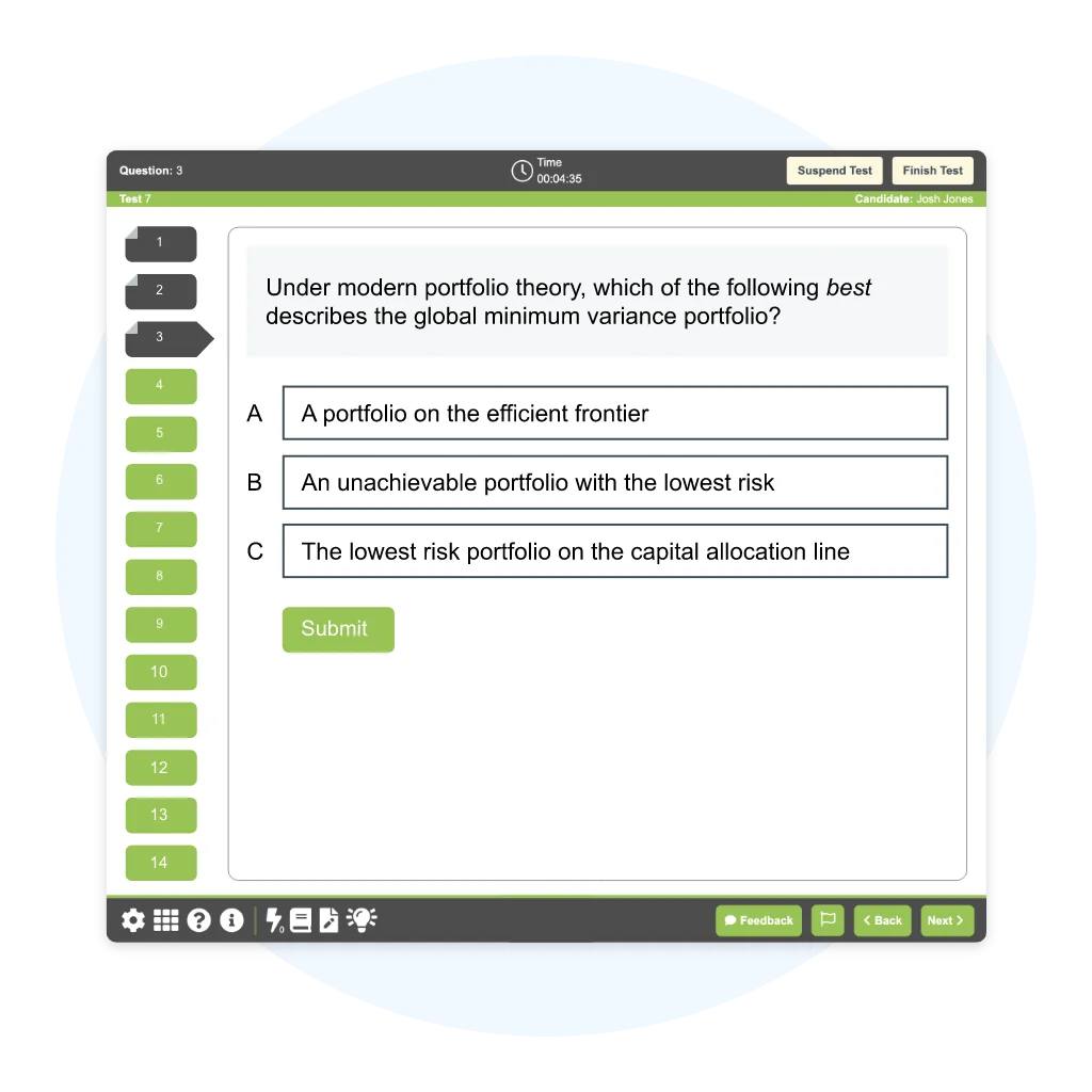 Access an extensive library of questions written by our in-house team of charterholders to meet or exceed exam-level difficulty. Questions feature engaging visual aids and in-depth explanations for each answer choice. Questions are routinely updated to reflect the current exam format and CFA Institute learning outcome statements.